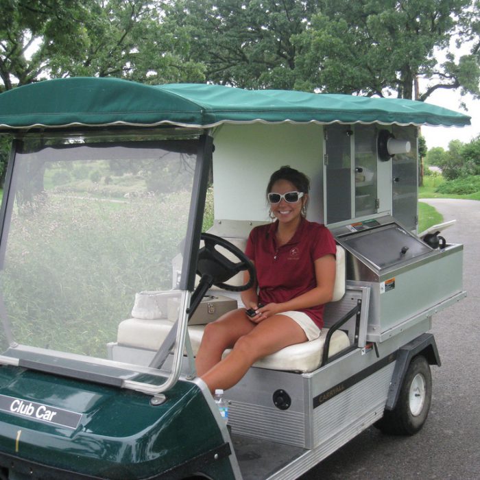 ‘Driving the beer cart is a super job. It’s a customer service, sales driven gig. The fresh air and a nice smile with prompt service will hopefully get you a tip. Beer cart driving is really just like being an outdoor waitress on wheels.’