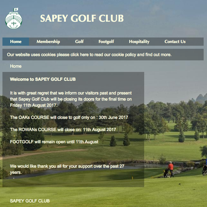 The club stated on its website this June: ‘It is with great regret that we inform our visitors past and present that Sapey Golf Club will be closing its doors for the final time on Friday 11th August 2017 … We would like thank you all for your support over the past 27 years.’