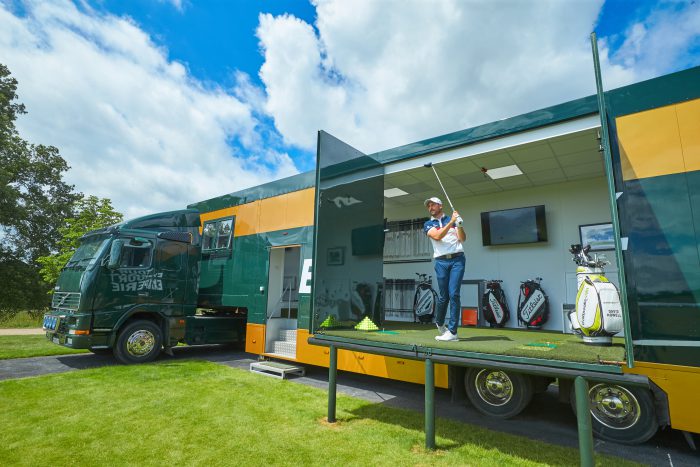 The 11-metre long lorry, which has a side-wall that opens out and provides a hitting platform onto The Grove’s full-length driving range, features cutting-edge technologies such as TrackMan, as well as hardware support from leading brands including TaylorMade, Titleist and Mizuno.