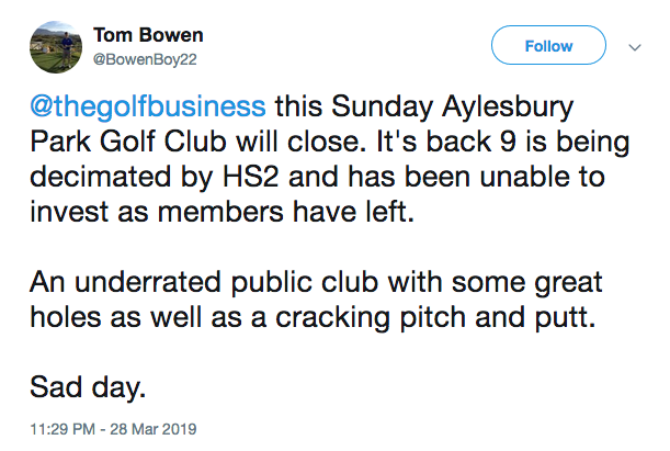 One golfer messaged The Golf Business to state: ‘Its back nine is being decimated by HS2 and [the club] has been unable to invest as members have left. An underrated public club with some great holes as well as a cracking pitch and putt. Sad day.’