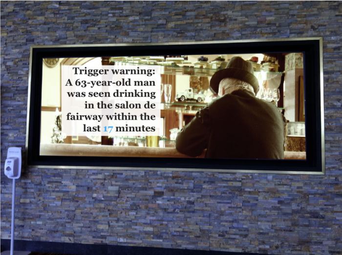 The club has installed a network of CCTV cameras and digital noticeboards around the venue, and when they detect the presence of people over the age of 50 via face recognition software, notices automatically appear on the relevant screen.