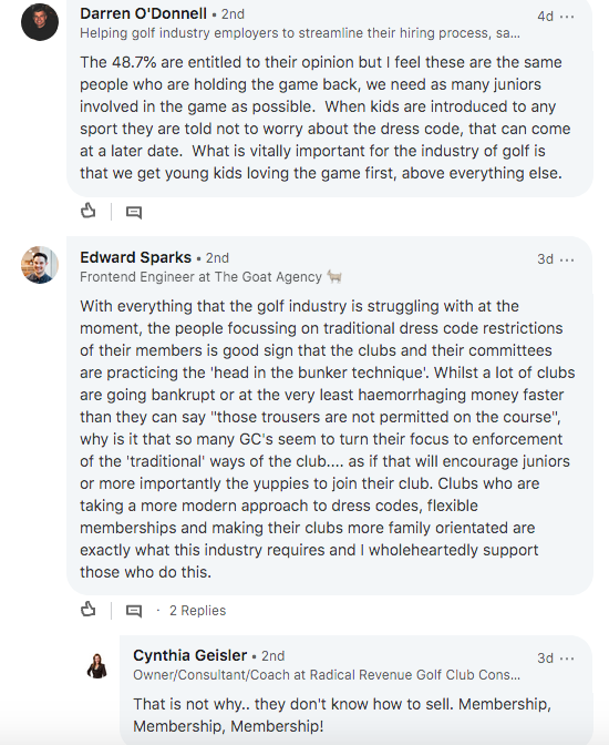 On LinkedIn The Golf Business received dozens of comments from people who work in the industry, in which there was also a slight majority in favour of relaxed dress codes. However, as one golf club manager noted: ‘So we have our golf Brexit, great’.