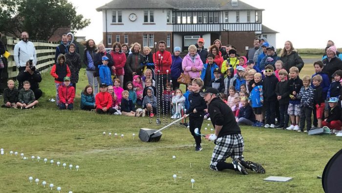 The club’s professional, Kieron Stevenson, and his team have set up ‘The Royal Troon School of Golf’, open to all boys and girls aged five to 12. Since embarking on this initiative, which commenced in early 2018, the team has dedicated over 400 voluntary hours of free golf sessions at the seven primary schools in the Troon area. This resulted in over 3,000 children being given the opportunity to play golf during curriculum time. This was followed by free sessions in the spring at the club, to give children the opportunity to experience more aspects of the game in a proper golfing environment. In May 2018 and May 2019, Royal Troon hosted a magnificent free ‘Summer Golf Festival’ with over 220 boys and girls attending, enjoying fun games, receiving a free Golphin4Kids golf club and being entertained by an amazing trick shot show. In the wake of the festival, there were well attended summer and autumn camps which included a mixture of group tuition and fun games.
