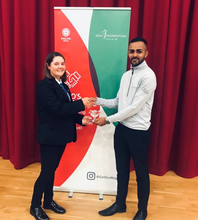 Gracie was proud as punch when she was presented with her award by Ali Jodiyawalla on behalf of England Golf’s Young Ambassadors programme.