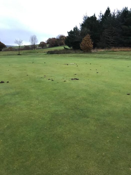 Photographs posted by the club on Facebook show one green with dozens of divots in the surface. The club has described this as ‘sustained and mindless vandalism’.