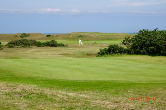 The course still occupies the same land it did when first established by the (military) members in 1878. Each hole has been changed over the years but owing to the land restrictions it has not been lengthened to any great extent. Measuring only 6,200 yards long, the defence is narrow fairways, strategic bunkering and, of course, the wind. The first four holes run along the beach and the first hole’s fairway runs between the sea wall and a mediaeval fort! Jack Nicklaus, when he played here in 1984, said it was one of the toughest opening tee shots he had ever played!