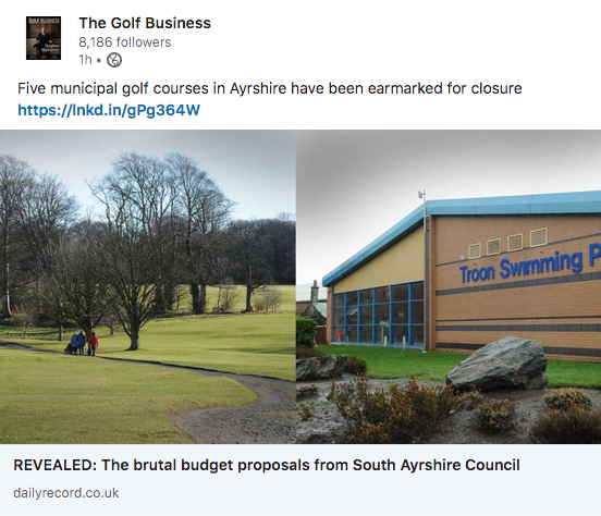 A few days ago The Times reported that Glasgow Life is considering closing down five of the local council’s six municipal golf courses due to low usage, and now the Ayrshire Post has revealed that South Ayrshire Council is considering closing five clubs as well, in order to find £9 million to balance its books.