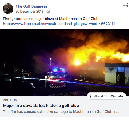 Just before Christmas 2018, Machrihanish Golf Club on the Mull of Kintyre, which regularly features in the top 20 in golf courses in Scotland lists and was designed by Old Tom Morris in 1879, suffered a devastating fire.