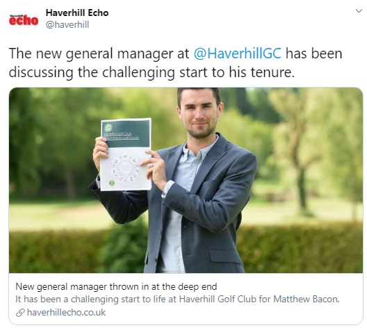 Matthew Bacon, 27, was appointed as the new general manager of Haverhill Golf Club in Suffolk just one week before the UK went into lockdown and the golf club had to close.