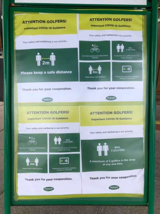 You may notice that we have put these signs up around the golf course today. From Wednesday 13th May the golf course will be open again for members to play golf.