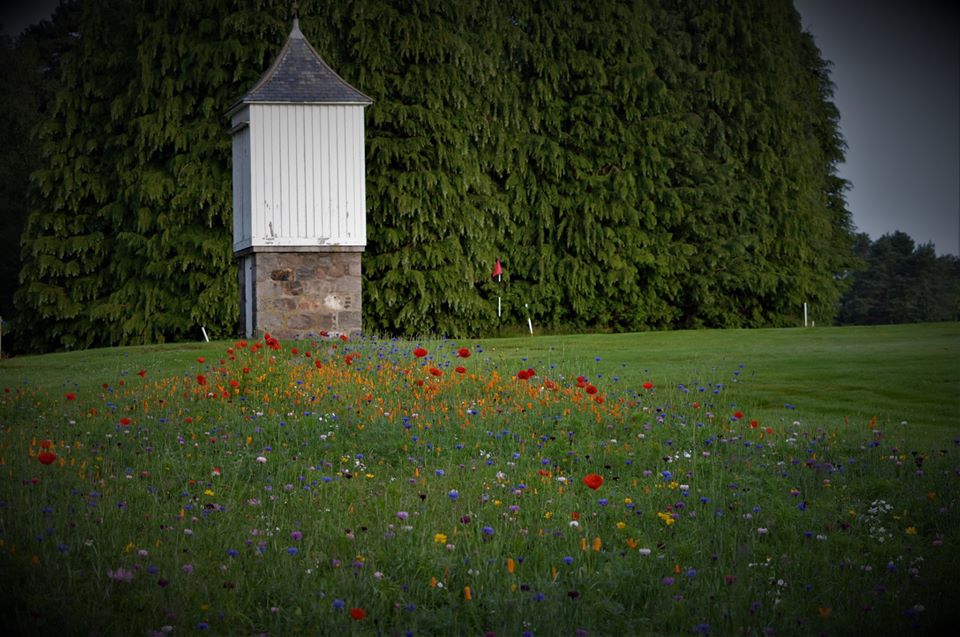 I have two Bombus hives on the course which are very simple and self-managed. I buy in the two colonies at the start of summer and they are positioned out of sight and play in areas where they can live and prosper. At the end of their lives the queen creates five or six ‘new’ queens that leave the hive and create their own colonies around Banchory. Increasing Bombus numbers and allowing more pollination in our wildflower meadows and surrounding farmland I’m sure.