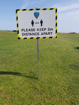 “There is lots of signage around the course reminding people about social distancing, with a number of signs on our paths and hard ground surfaces. We have screens up in the starters lodge and are asking people physically not to go into the lodge, to stay outside it.
