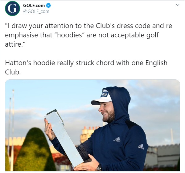 An English golf club that issued a statement on its website that ‘hoodies are not acceptable’, in response to Tyrrell Hatton wearing one during his recent victory at the BMW Championship, has intensified a debate about dress codes.