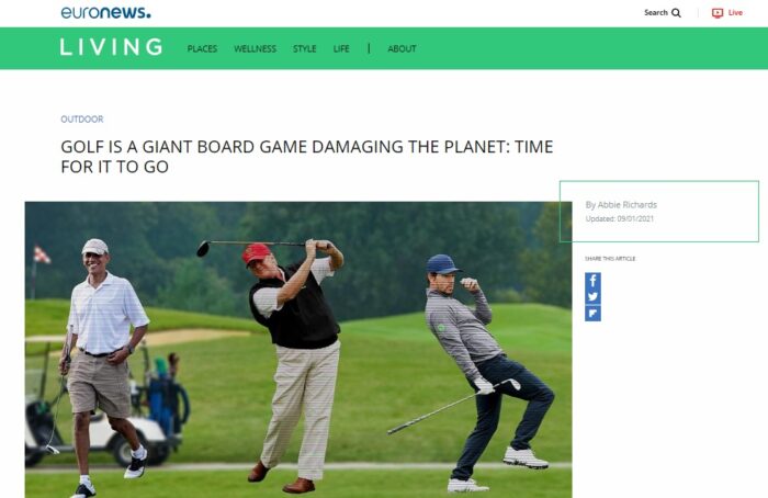 In January 2021, Euro News wrote that ‘golf is a giant board game damaging the planet: time for it to go’, adding that ‘courses dump often unregulated fertilisers and pesticides on their greenways to keep the grass looking unnaturally green’.