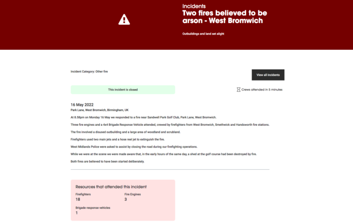 A spokesman for West Midlands Fire Service said: “At 8.58pm on Monday 16 May we responded to a fire near Sandwell Park Golf Club, Park Lane, West Bromwich. Three fire engines and a 4×4 Brigade Response Vehicle attended, crewed by firefighters from West Bromwich, Smethwick and Handsworth fire stations.