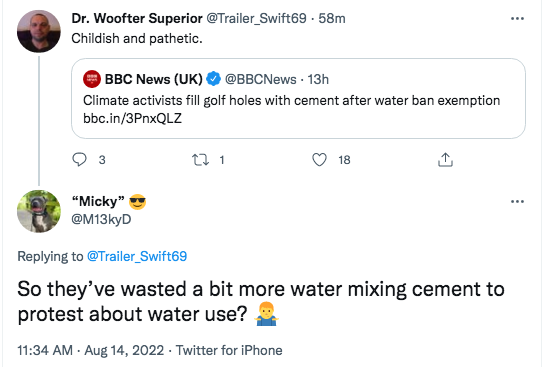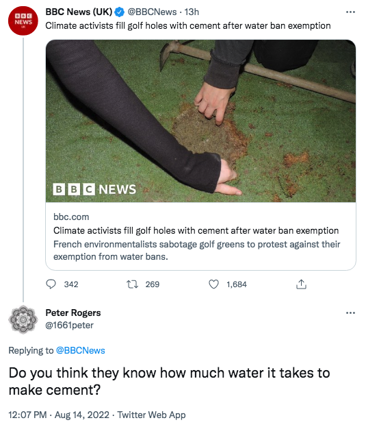 Environmental campaigners have been mocked online for filling golf holes at courses in France with cement to make a point about irrigation – even though water is required to make cement.