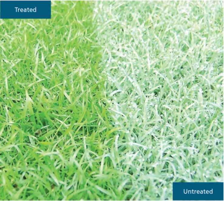 • When carried in water, that is as a spray, they have the ability to stick to leaf surface and dry. Once on the surface of the grass they have the physicochemical ability to break down surface tension. Ideally the molecules need to be photostable and persist in an active form for two to four weeks.