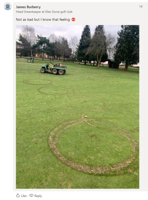 James Burberry, the head greenkeeper at Glen Gorse Golf Club in Leicestershire, then also commented on LinkedIn that his venue has suffered a similar attack, on February 18.
