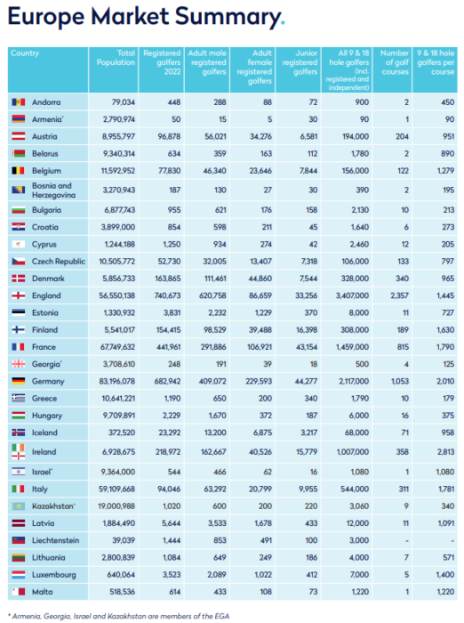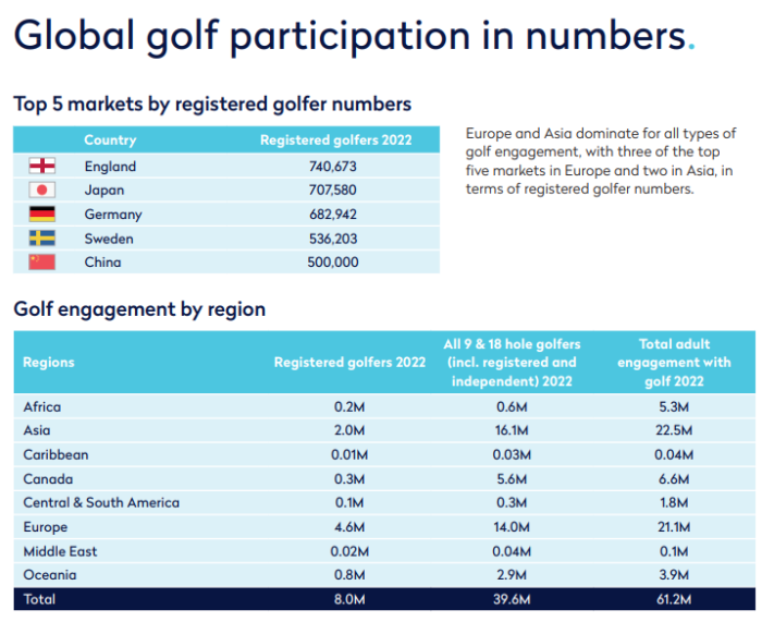 While the USA is not included in the research, the latest data shows that that country has 25.6 million active golfers.