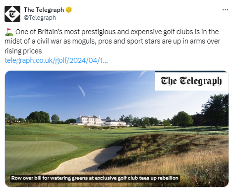 According to the paper, the club’s chairman, Gerard Tvedt, wrote to members in January saying their annual membership fees were to rise by £1,800 per year to £13,000, to fund a new £3.4 million irrigation project.