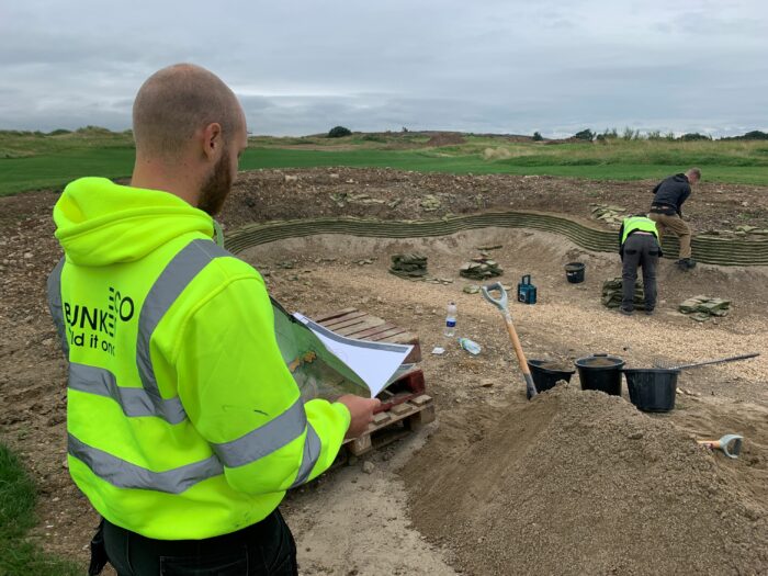 “We worked alongside a fantastic team to lay out the shape of the course and then brought in specialists to help with greens, bunkers and tees. EcoBunker have done an incredible job with the course’s main defence – the bunkers.”