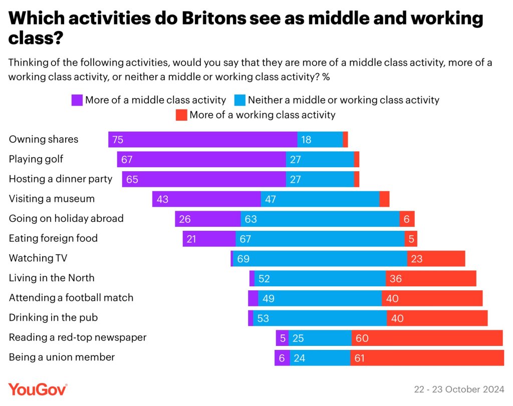 The pollster picked a range of activities and asked people if they thought they were more working class or middle class.