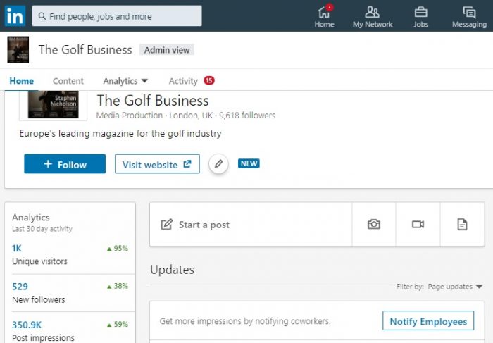 On LinkedIn, the social network in which hundreds of golf club managers discuss the industry every day, The Golf Business has more than 30,000 followers, more than every golf governing body in the world.