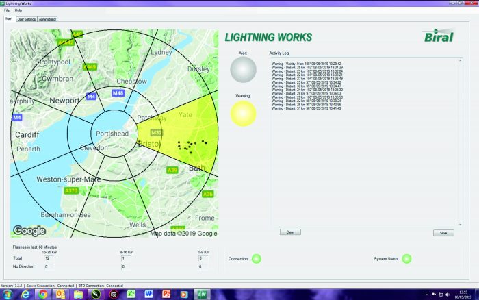 Designed to be quickly and easily installed, the comprehensive server software package of the BTD-200 detects cloud-to-ground, intra-cloud and cloud-to-cloud lightning, charged precipitation and strong atmospheric electric fields, displaying the lightning distance in real-time on a map of the local area and the current lightning alarm level.