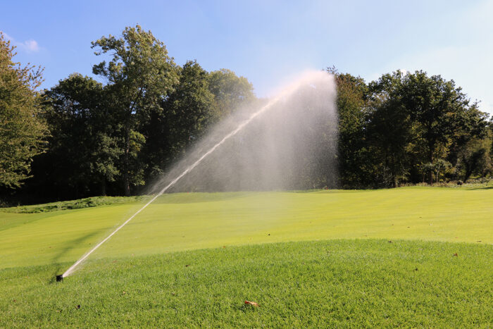 If your green is 400 square metres, and you need to apply 3.5mm across the surface, then this amounts to 1,400 litres across the surface (400m2 x 3.5mm). If you have four sprinklers on the green, then each sprinkler needs to apply 350 litres (1,400 litres / four sprinklers). If each sprinkler’s nozzle flow rate is 60 litres per minute, then the run time per sprinkler will be about six minutes (350 litres /60 lpm).